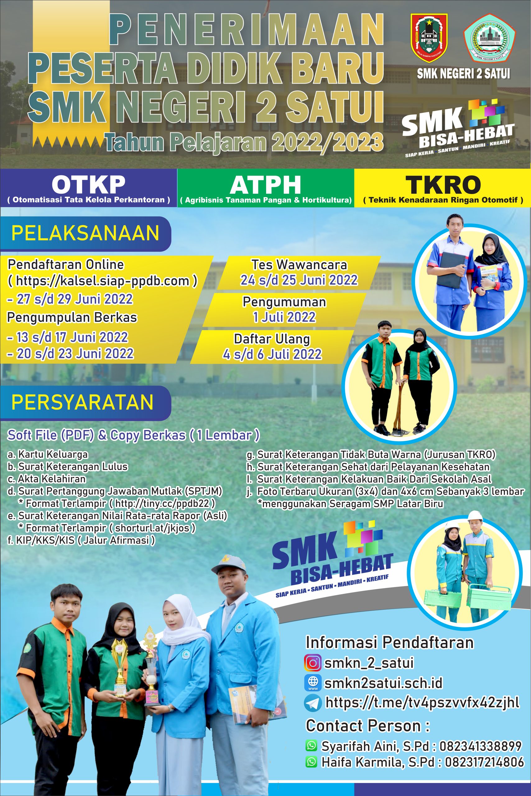 SMK Negeri 2 Satui adalah salah satu Sekolah Menengah Kejuruan terbaik di Tanah Bumbu. Ayo bergabung bersama SMK Negeri 2 Satui untuk mendapatan pendidikan dan keterampilan terbaik.